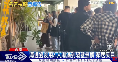 台南一間飲料店人潮堵到隔壁騎樓! 鄰居怒擋通道 驚動警到場。。