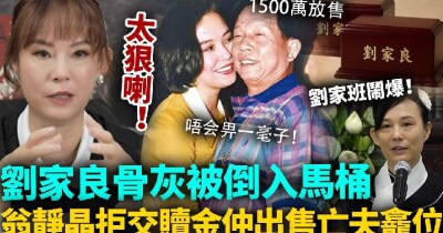 震撼全城!劉家良骨灰被倒入馬桶!?翁靜晶拒交贖金揚言一蚊都唔畀,仲1500萬出售亡夫龕位,揚言唔會再去祭拜!劉家班鬧爆!
